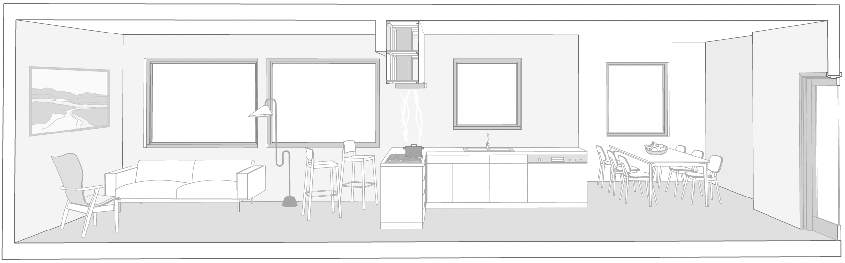 Our process toward ultimate solutions wanders back and forth between analogue and digital tools. It's a method we consider most instrumental in delivering a thoroughly realised design proposal and satisfaction of a client's vision.